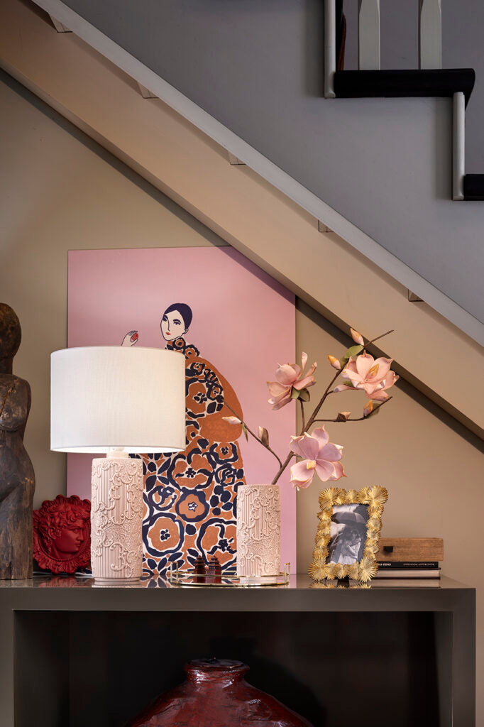 Lampada da tavolo con base in ceramica effetto pizzo dentelle